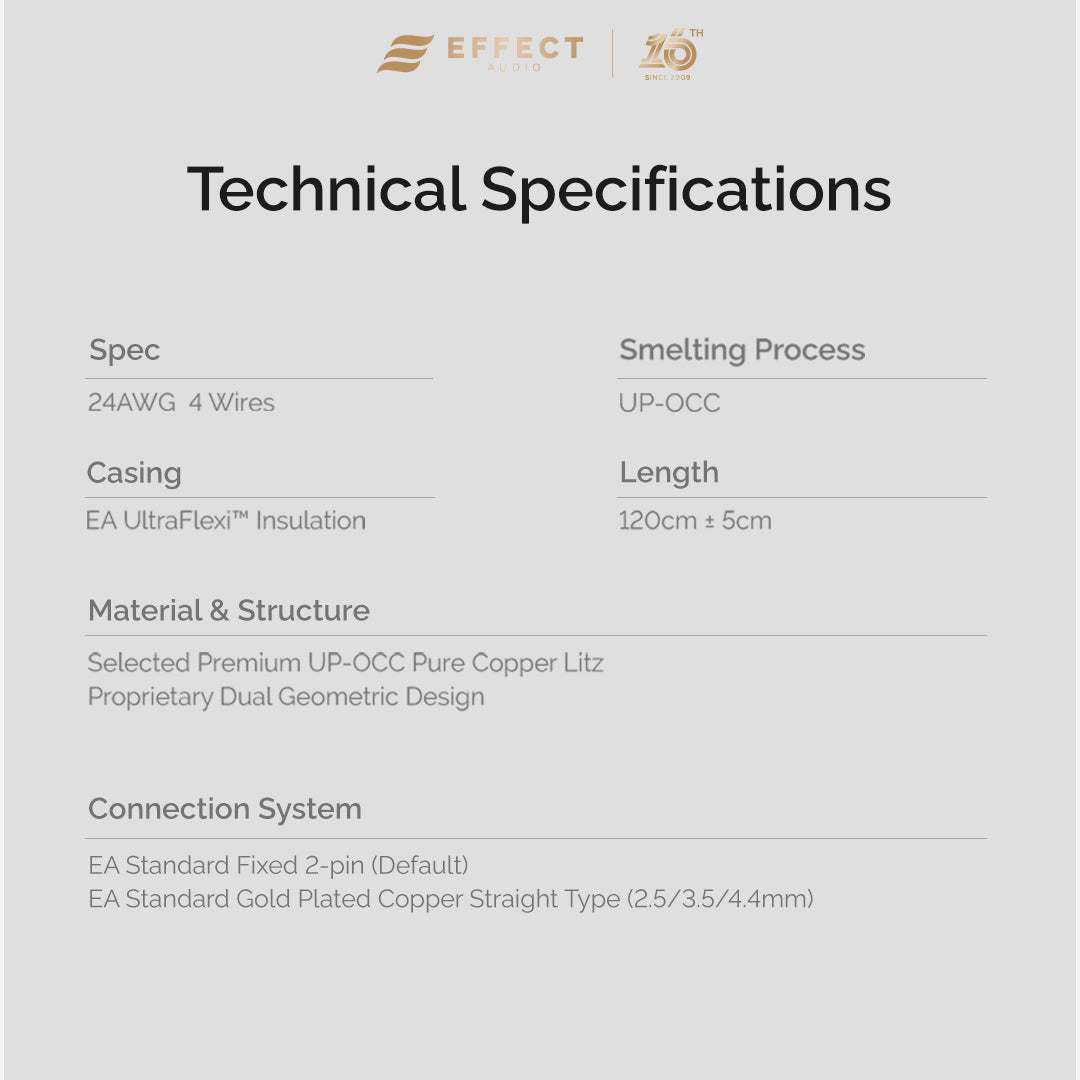 EFFECT AUDIO has specially selected premium UP-OCC materials, developed using years of structural design expertise, with reference to our mid-to-high-end products. The potential of the cable is limitless.